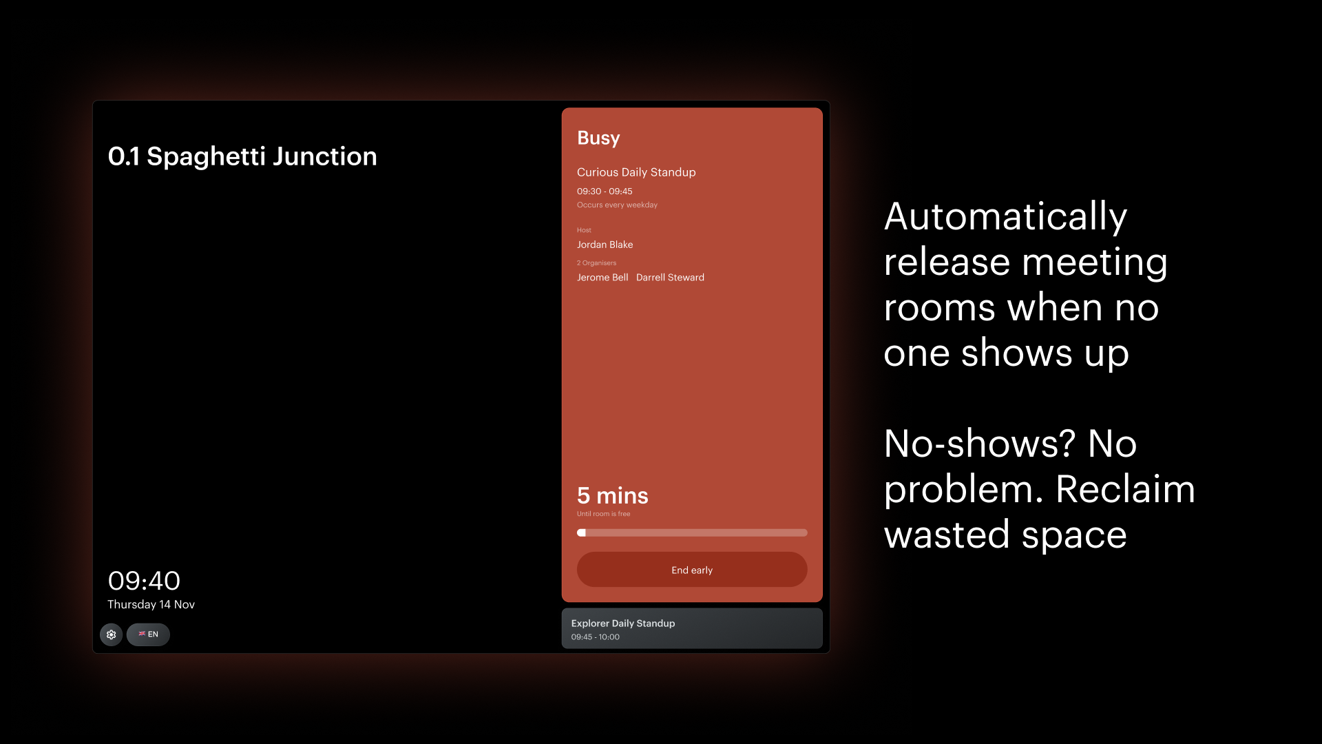 Ricoh Workplace Experience (WEX) connects people, spaces, and systems to create intelligent, frictionless workplaces. With Neat Pad, WEX enhances room scheduling and in-room experience, bringing collaboration to life. Integration with Neat Pulse adds unified visibility and control.