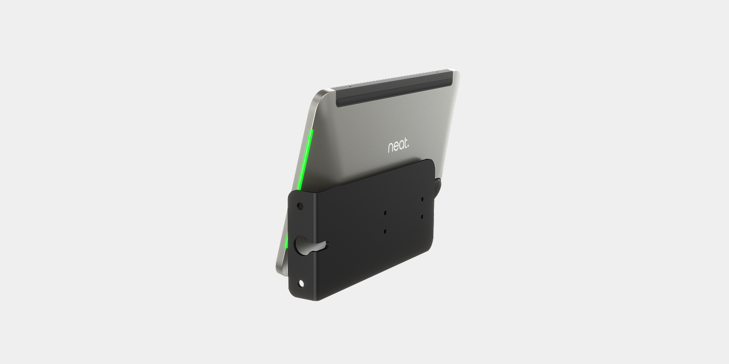 Neat Pad Pro comes ready to rock, with everything you need to get up and running in minutes. Its cleverly designed, multi-purpose mounting bracket works on walls, tables, or mullions, while a single Power over Ethernet (PoE) cable keeps setups clean—no messy wiring, no IT headaches. Just plug in, power up, and take control.