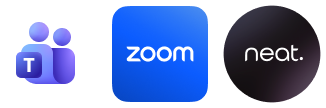 Neat Pad Pro works with Microsoft Teams, Zoom, and a broad ecosystem of room-booking platforms.*