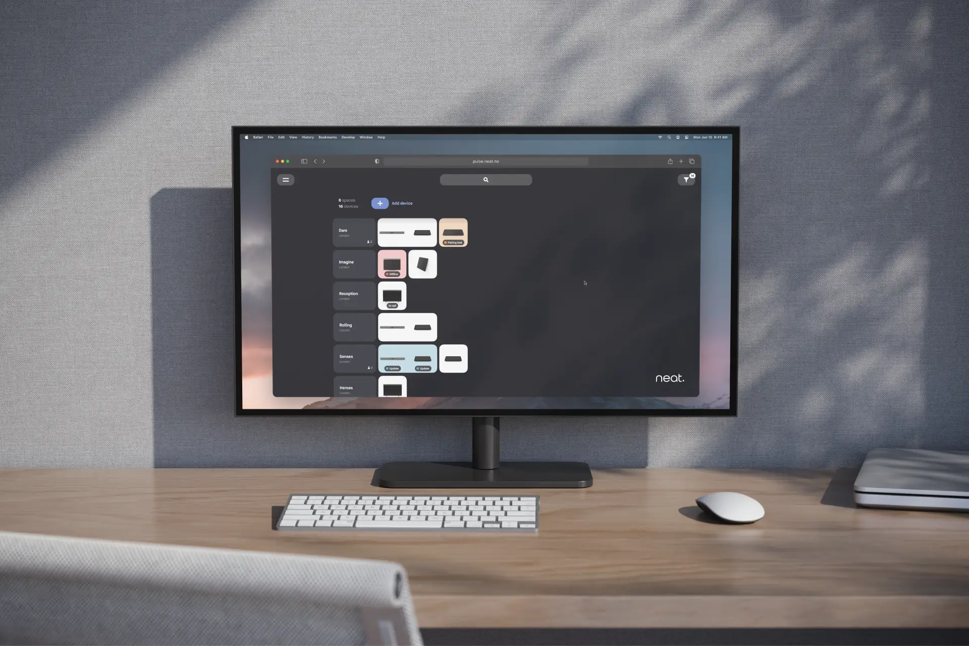 Manage Neat Pad Pro and your entire deployment remotely with Neat Pulse, our cloud-based platform. From one intuitive dashboard, create standard or custom configurations, apply updates, and streamline control. Upgrade to paid plans for premium support and extended warranty coverage.